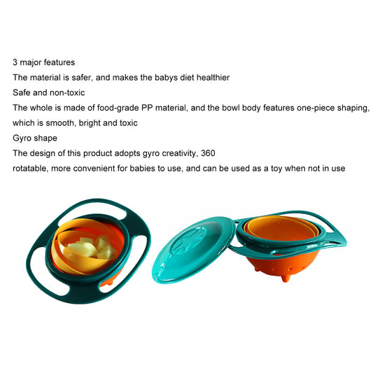 Baby Kids Feeding Bowl Magic 360° Rotary Gyro Bowl Spill-Proof Balance Baby Bowl