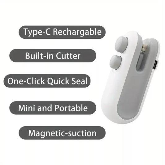 Mini SnacksBag Sealer Rechargeable 2 in 1 Bag Heat Sealer with Cutter for Chip