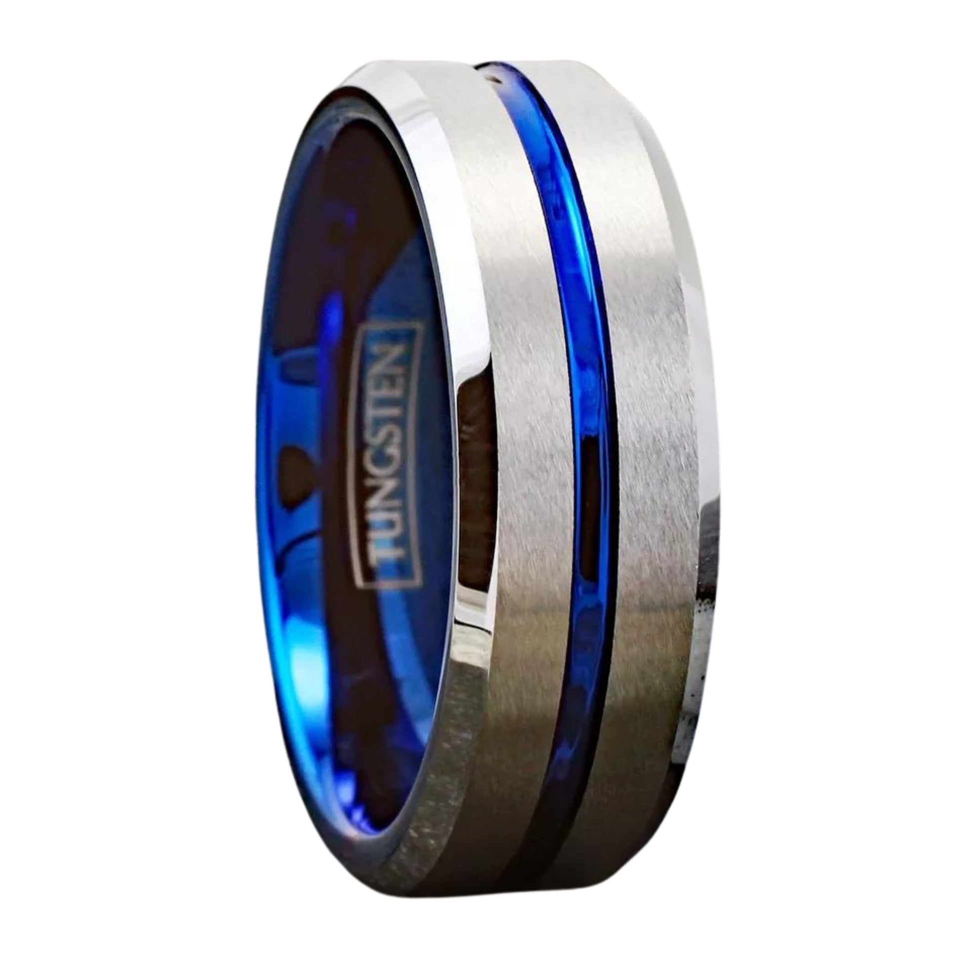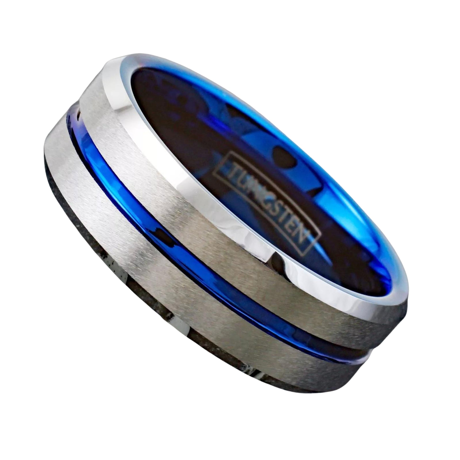 Customizable Thin Blue Line Wedding Band | Brushed Silver Tungsten Men's Ring | Wedding Band Jewelry