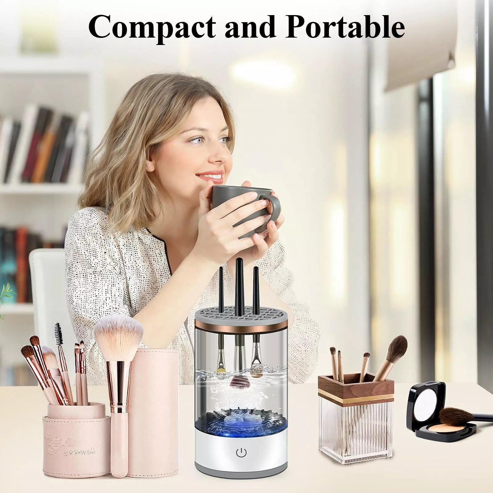 Introducing the Electric Makeup Brush Cleaner, a revolutionary automatic cosmetic brush cleaning machine designed to make your beauty routine effortless and efficient. Here are five standout features:
