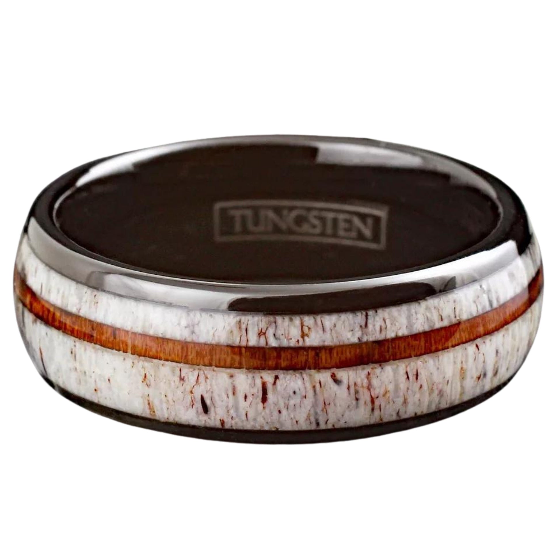 Genuine Deer Antler Inlay: The ring features an authentic deer antler inlay, offering a unique and natural aesthetic that symbolizes strength and connection to nature.