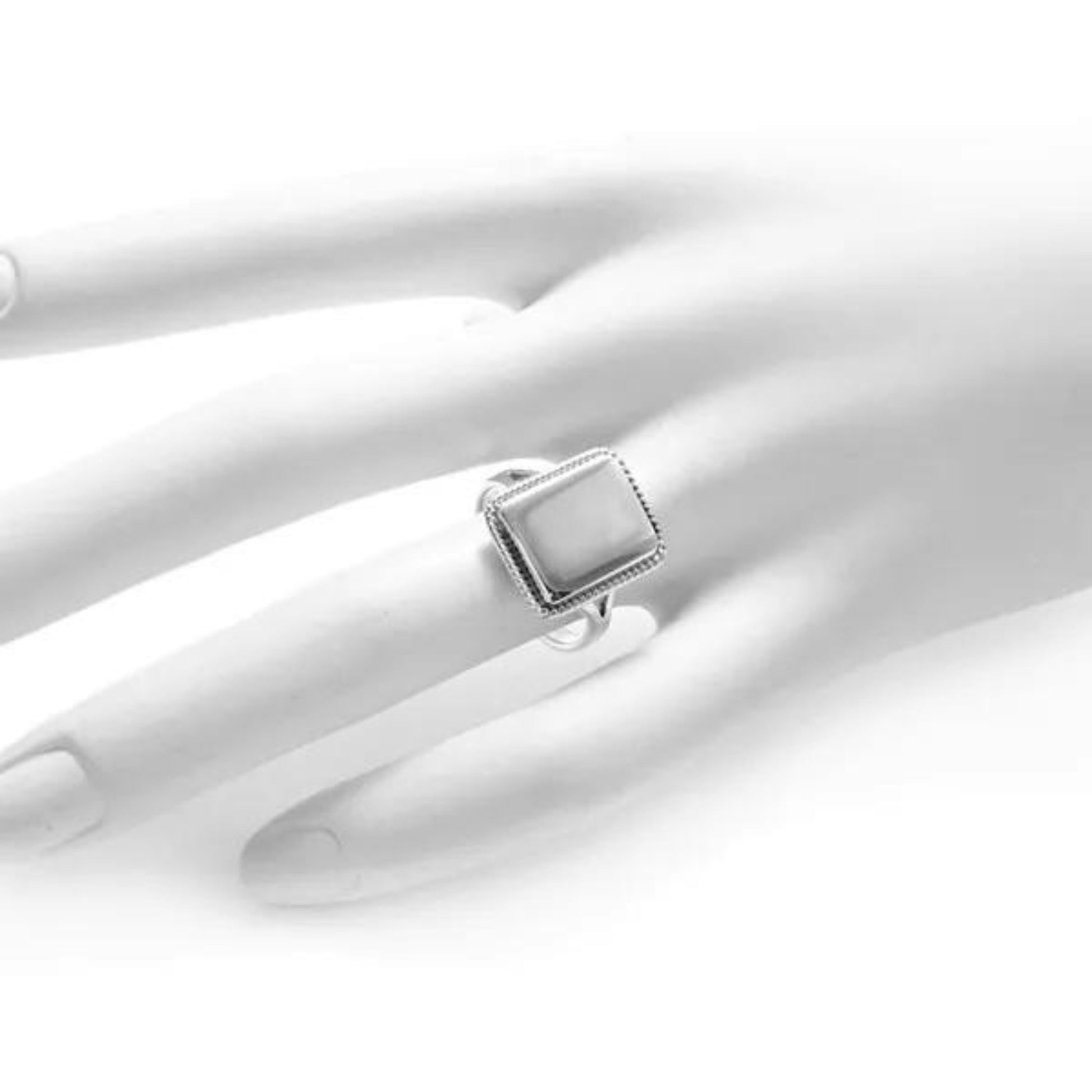Personalizable Rectangle Shaped Women Ring | 925 Sterling Silver Rope Edge Design | 17mm Ring with All Size 5-9