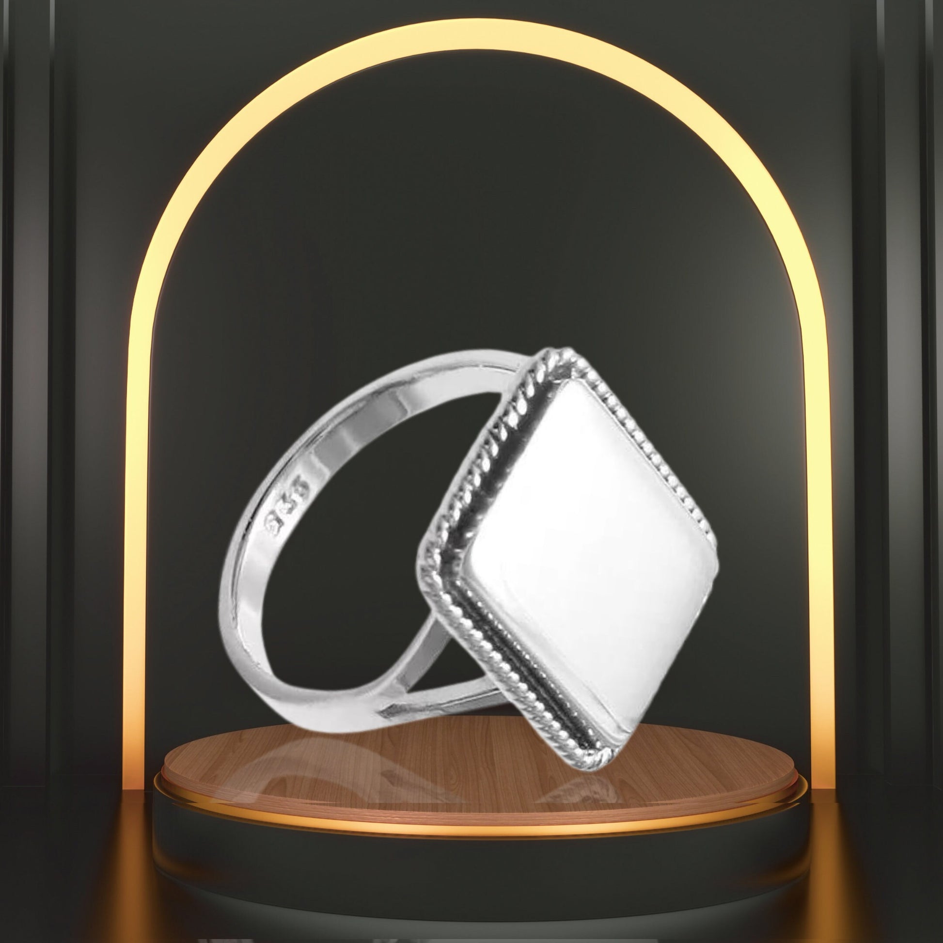 Express your unique style with this personalized rectangle-shaped women's ring, meticulously crafted from 925 sterling silver. Featuring a distinctive rope edge design, this 17mm ring offers a blend of elegance and customization, making it a perfect accessory for any occasion. Available in sizes 5–9, this ring is a versatile addition to any jewelry collection, allowing for a personalized touch that makes it truly one-of-a-kind.
