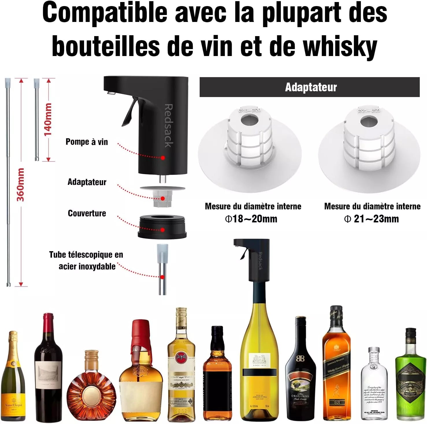 Elevate your drinking experience with the Redsack Wine Dispenser Electric Decanter Aerator! This sleek black device combines elegance with innovation to enhance your favorite beverages.