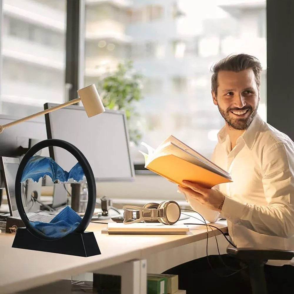 Dynamic 3D Sandscape: Watch as fine grains of sand cascade and shift within the frame, creating intricate, ever-evolving 3D landscapes. Each movement is a blend of nature's artistry and modern design, delivering a continuous visual journey that can enchant for hours.